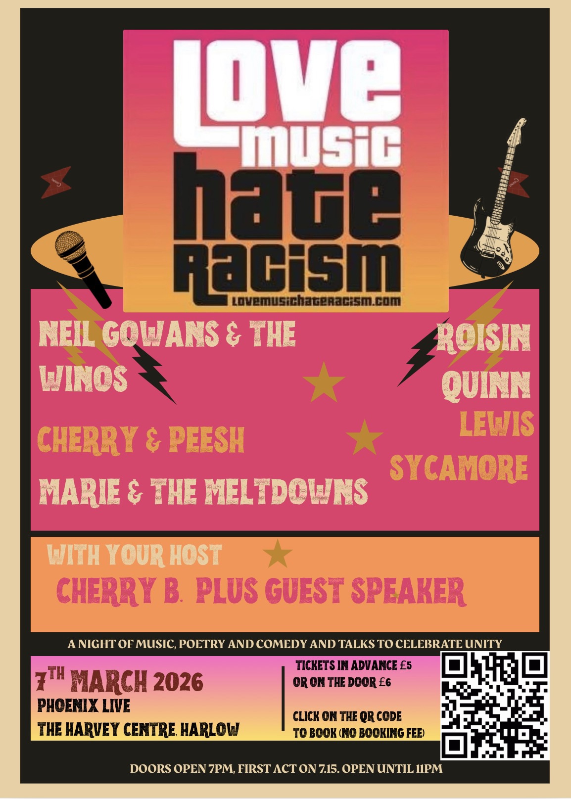 After a fab gig in Bow on Saturday, next up is a Love Music Hate Racism benefit in Harlow. There will be sets from Cherry & Peesh, Roisin Quinn, Lewis Sycamore and Marie and The Meltdowns. Oh, and us.